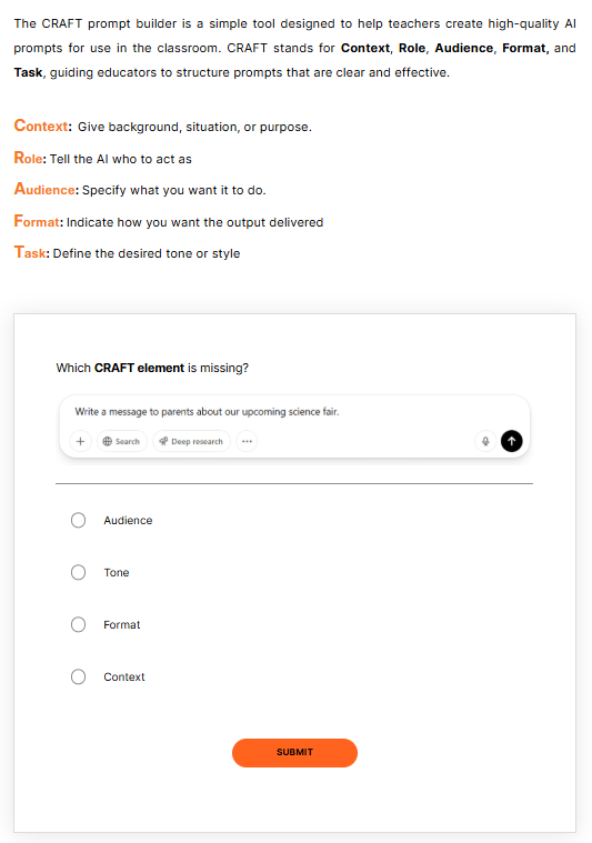✔ Build foundational AI skills, including basic interaction with AI tools and introductory algorithmic thinking