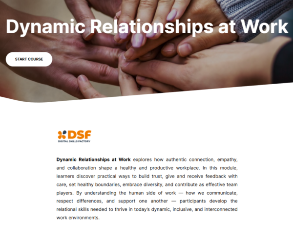 A 25-hour course that helps professionals and job seekers manage change, build emotional intelligence, reduce stress, improve relationships at work, balance screen time and social media, handle failure, communicate effectively, and stay motivated through lifelong learning and upskilling.